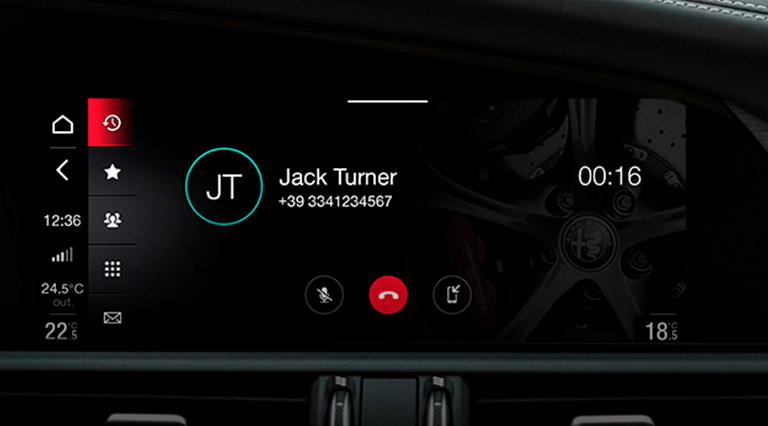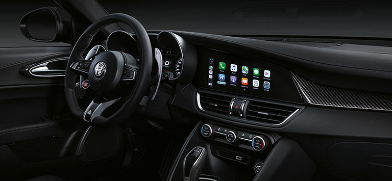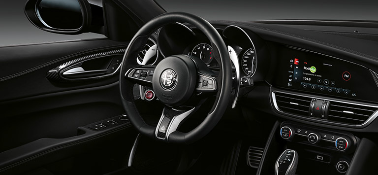 El sistema de infoentretenimiento de Alfa Romeo Giulia Quadrifoglio incluye una pantalla multitáctil de 8,8” con widgets configurables